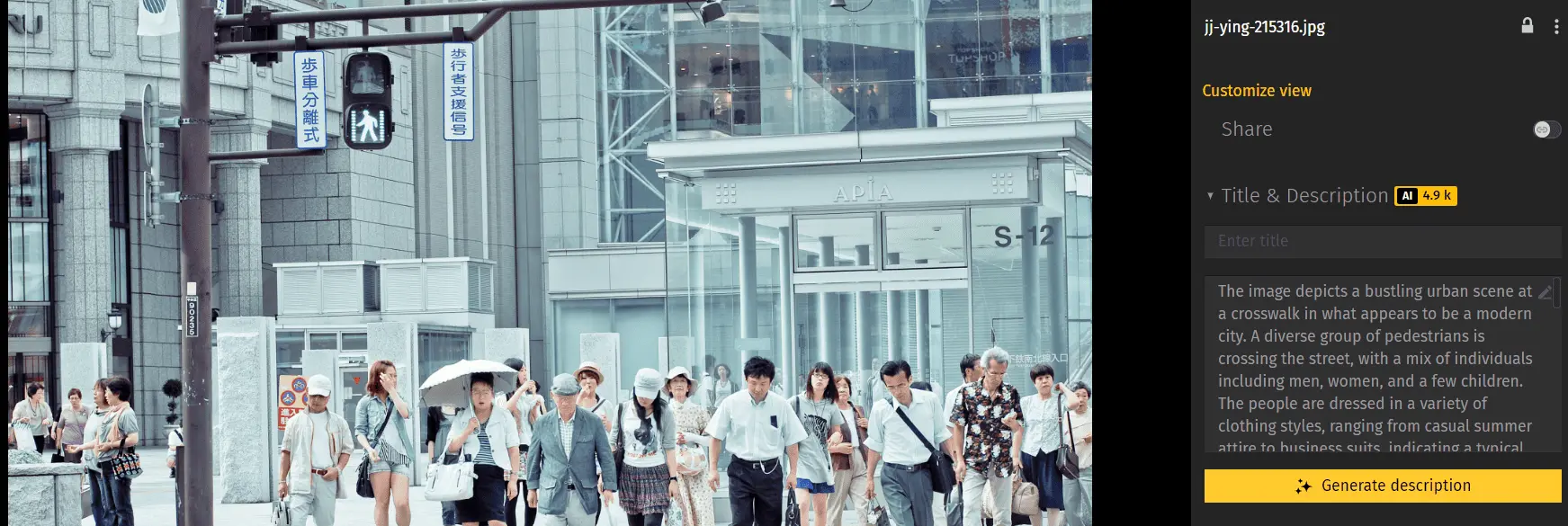 Here’s how an image with an AI-generated asset description looks like. Users can also manually delete or edit descriptions if needed.