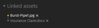 Keywords are descriptive tags that let you note the object or the subject of an asset. You can see that I’ve added only one - insurance claim - because I am uploading a text asset. If that was a photo, for example, I can also add keywords that tell me what is in the photo (e.g. condo, pipe leak, electrical grid, etc.)