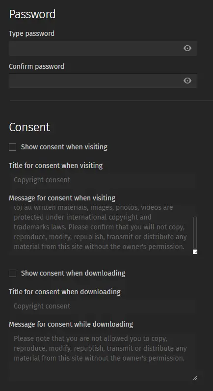 There is also an option to create a consent form to notify viewers of any repercussions should they not comply and frivolously share, distribute, or modify files without your approval: