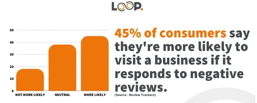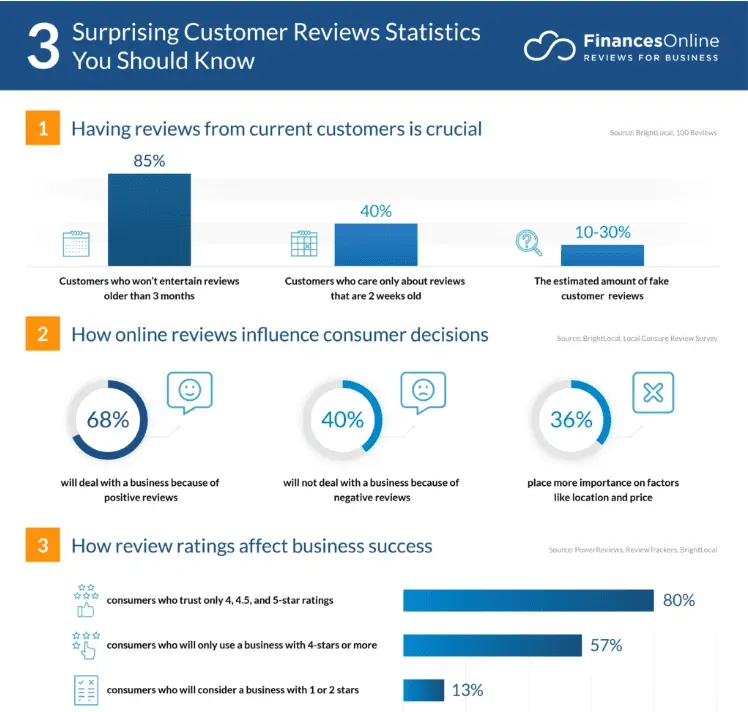 57% of clients are unlikely to purchase from a business that does not respond to its customer reviews. Additionally, honest and transparent reviews, even if they are not all positive, can further reinforce the clients' trust. By displaying reviews prominently on their website or product pages, businesses can demonstrate a willingness to be open and honest with their customers, which can go a long way in establishing and maintaining trust. Ultimately, this trust can lead to the increased customer loyalty and future purchases.