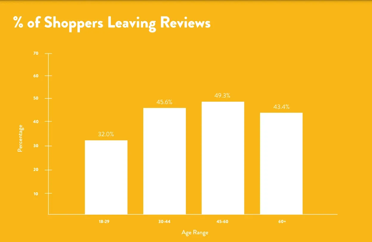 - 49.3% of people aged between 45-60 years leave a review because they value the money they spent.