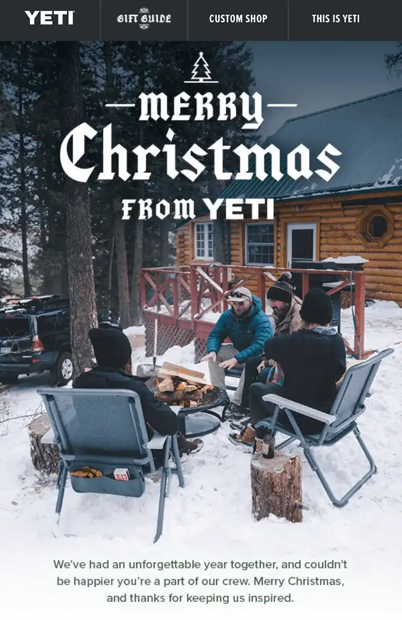 In addition to wishing their customers well during the festive season, Yeti uses the opportunity to thank them for choosing to work with them throughout the year. This makes customers feel that you value and appreciate their being part of your team apart from buying your products or services.