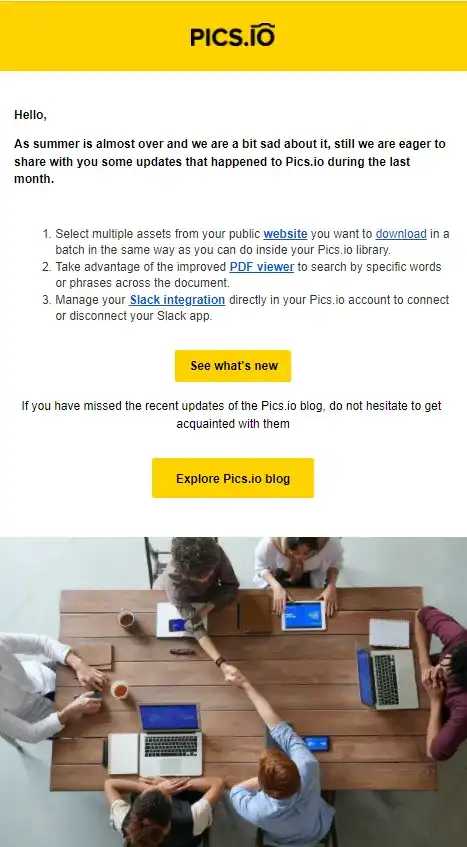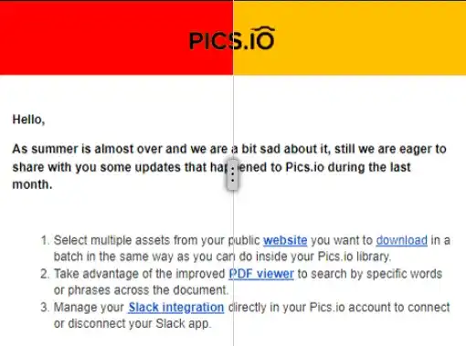Emails remain an important element of marketing strategy, but with how many companies send emails on a daily basis, it is extremely easy to get lost in the crowd. Creating a catchy and memorable design for your newsletter will help with driving more engagement towards your business. And if you want to stay on top of your newsletter assets, the DAM solution is as good as it gets. So don’t hesitate to try Pics.io for free today or you can book a demo with us so that we can answer all your concerns! Keep on rockin’!