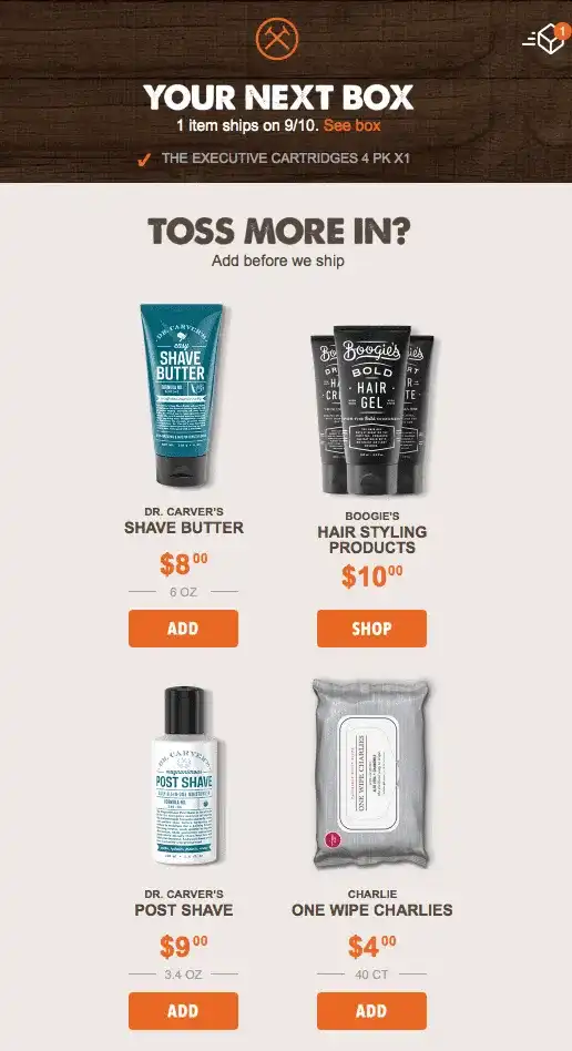 This upsell email makes the process easy for the customer. The sender considers every step the customer makes in their upsell journey. Its recommendations are specific, with each item having its own CTA. This makes it easier for the buyer to choose what they want.