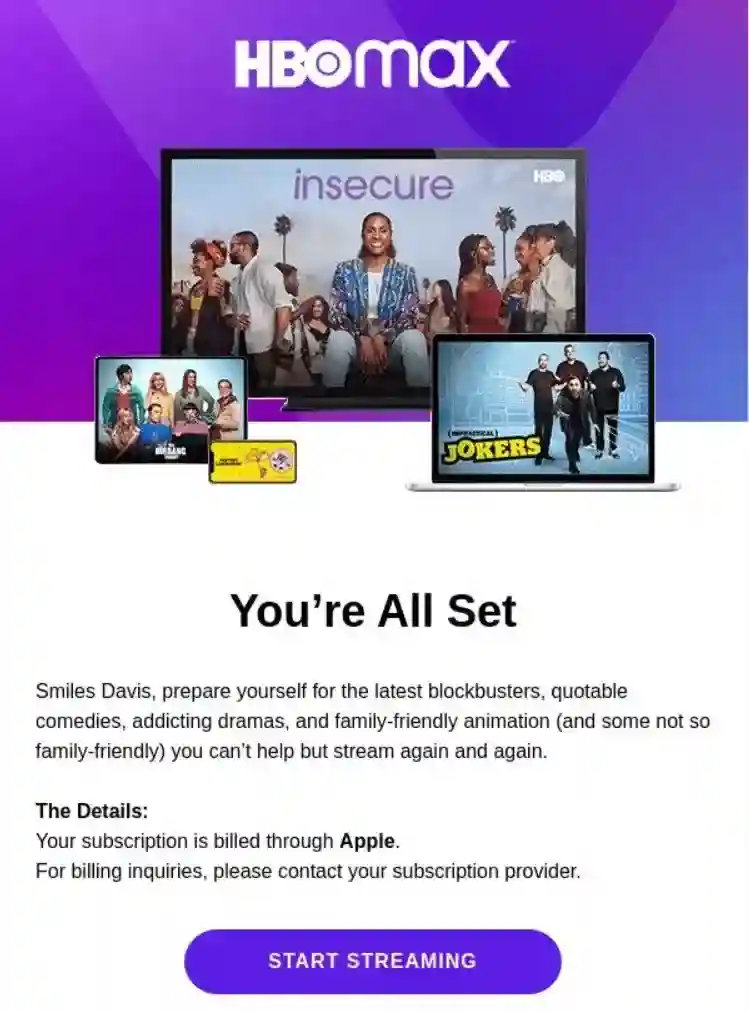 HBO's welcome email integrates some of the up-and-running shows into its design, informing new customers on how they can use their new subscription.
