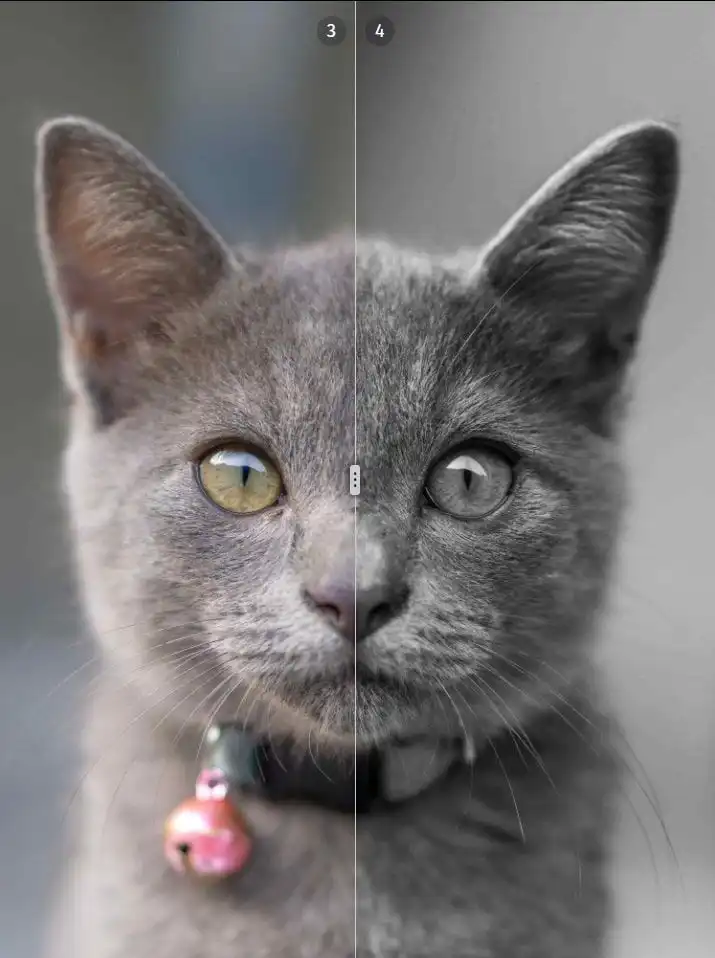 So now I can easily see how it'll look in comparison with the original. Our purring model is already gray-ish, so I was worried that it might not make enough of a difference with a grayscale filter.